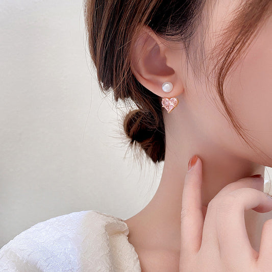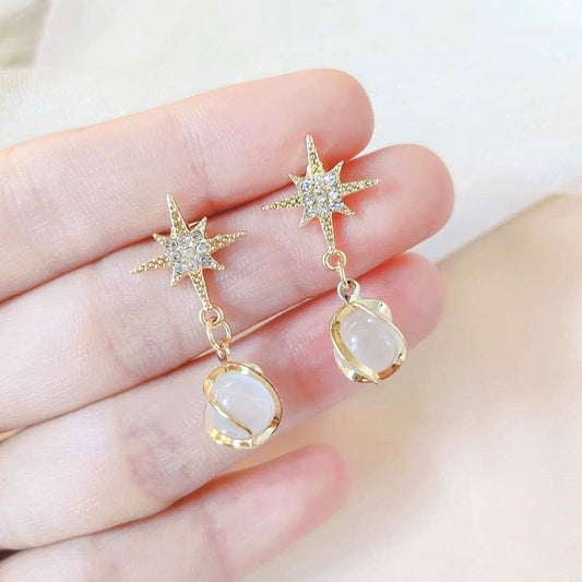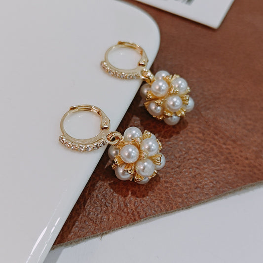 PS9 Korean Pearl Stone Bow Circle Earrings
