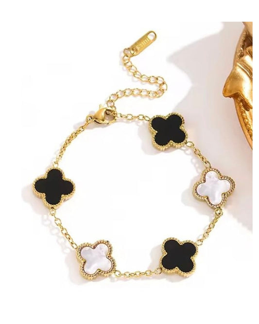 PS14 Korean Anti Tarnish Black and White Clover Bracelet