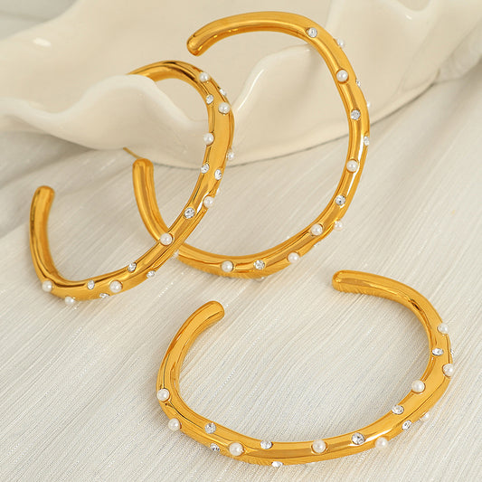 Premium Open Pearls Bracelet - 18K Gold Plated Royal Pearl Sparkle Bangle