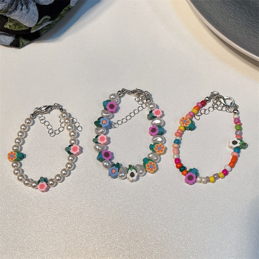 Colorful Pearl Floral Beads Adjustable Bracelet