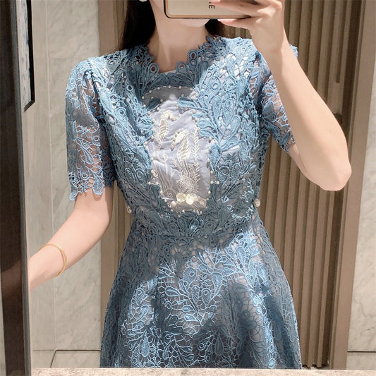 Premium Cara A-line Sleeveless Lace Midi Dress
