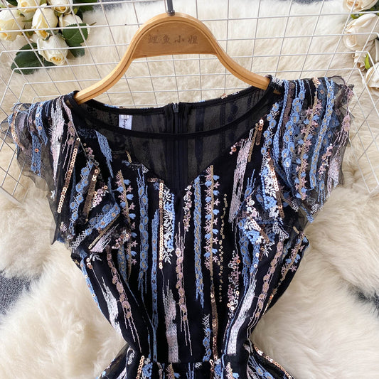 Knitted Sweater Pleated Patchwork Gradient Ruffled Elegant Dress