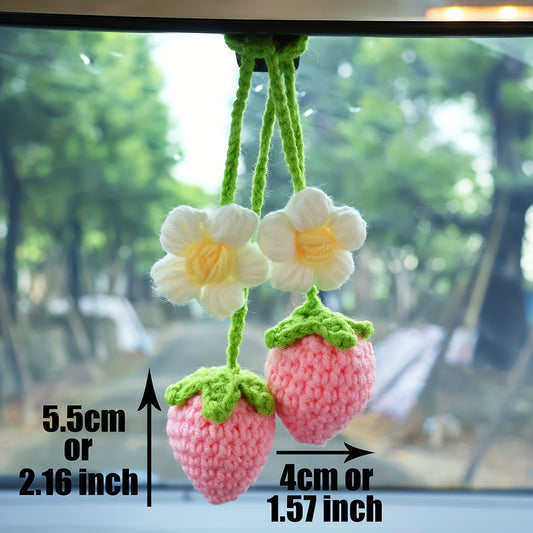 Set of 2 Pink Strawberry Crochet Decor Car Showpeice Keychain