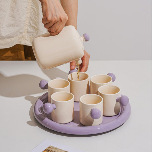 Cute Whimsical Dopamine Bauhaus Tea Pot & Tea Cups Set Of 8 Pcs - Handmade Ceramic Teaset Gift Box