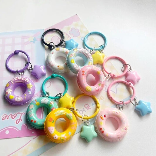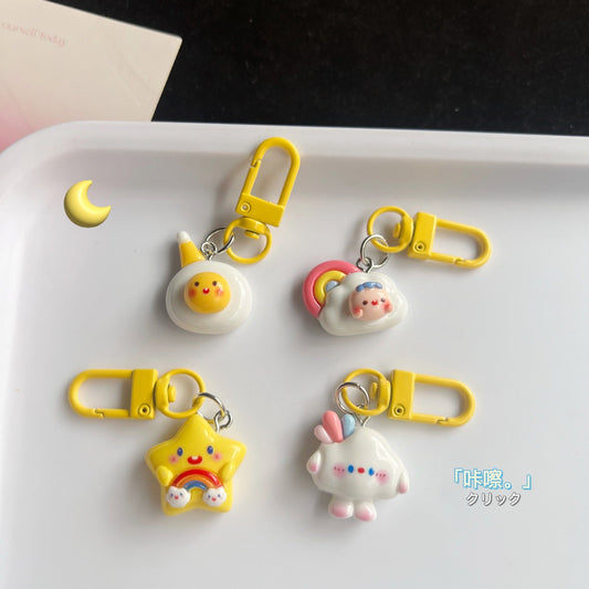 Kawaii Yellow Rainbow Cloud Moon Stars Keychain / Keycharm
