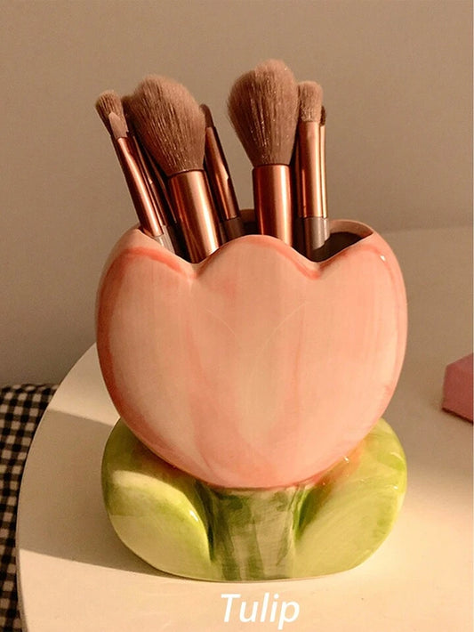 Tulip Blossom Ceramic Pen Stand / Makeup Holder Organiser