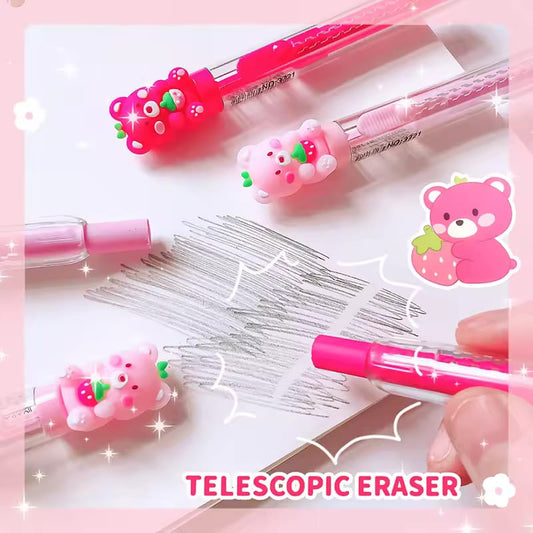 Berry Pink Push Cute Telescopic Erasers 🍓🐻