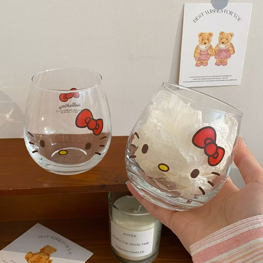 Hello Kitty Aesthetic Glass Tumbler with Lid and Straw