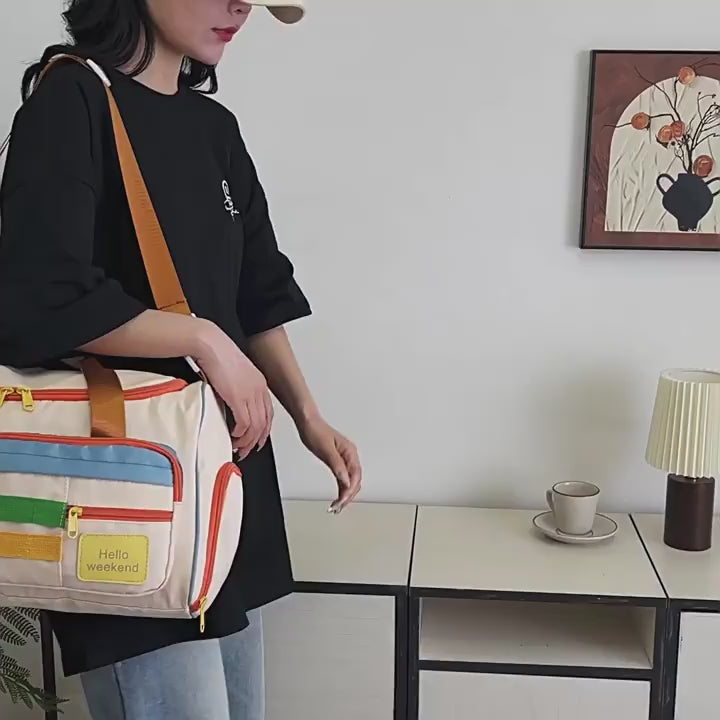 β¨π Say hello to your new weekend BFF! π This quirky duffel is not just a bag, itβs a vibe! ππΊ With its color-pop pockets πππ and playful zips π, itβs basically shouting βpack me & letβs goooo!β πβοΈπ